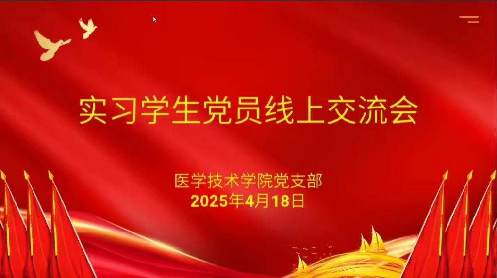 為了進(jìn)一步加強(qiáng)實習(xí)學(xué)生黨員教育管理工作,積極落實相關(guān)文件要求,4月18日晚,醫(yī)學(xué)技術(shù)學(xué)院黨支部通過召開線上會議的方式開展在外實習(xí)學(xué)生黨員線上交流會,會議由黨支部書記孫曉會主持,黨支部全體支委和在外實習(xí)學(xué)生黨員參加了本次會議。