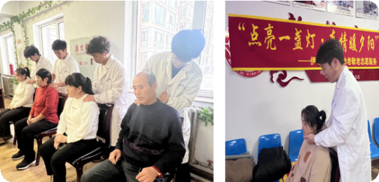 為深入學(xué)習(xí)貫徹習(xí)近平新時(shí)代中國特色社會(huì)主義思想和黨的二十大精神,積極響應(yīng)“健康中國”的戰(zhàn)略方針,更好地滿足老年人對高質(zhì)量醫(yī)療服務(wù)和人文關(guān)懷的需求,2024年12月4日下午14點(diǎn),伊春市委社會(huì)工作部、伊春職業(yè)學(xué)院和新欣社區(qū)聯(lián)合舉辦了“點(diǎn)亮一盞燈,真情暖夕陽”助老敬老志愿活動(dòng)。“康平樂”中醫(yī)康復(fù)技能培訓(xùn)工作室?guī)熒谐跣?,致力為社區(qū)老人帶來“健康、平安、快樂”,由指導(dǎo)教師李洋、張程程帶領(lǐng)7名優(yōu)秀學(xué)員組成志愿服務(wù)隊(duì),為現(xiàn)場老年群眾診查常見疾病,進(jìn)行頸肩部推拿,并提供健康指導(dǎo)。
