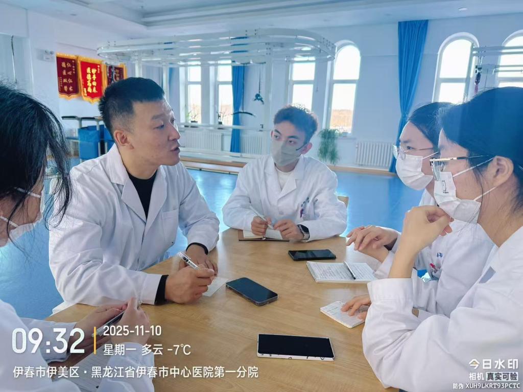 本次復(fù)診,董主任細(xì)察患者手臂有刀傷、言語間頻現(xiàn)嘆息的狀態(tài),結(jié)合舌苔脈象,提出中藥加針灸方案,曾抗拒的患者此番欣然應(yīng)允。見患者針灸前緊張握拳、牙關(guān)緊咬,董主任立即指導(dǎo)學(xué)生墊毛巾護(hù)舌、幫患者放松,隨后詳解“醒腦開竅”法,逐一點(diǎn)明人中、內(nèi)關(guān)等穴位的功效與刺法。銀針輕靈刺入,患者漸趨平穩(wěn),這一刻銀針仿佛成為溝通醫(yī)患、調(diào)和心神的橋梁。董香玲邊操作邊同步講解要點(diǎn),學(xué)生們不僅學(xué)會(huì)了進(jìn)針技巧,更讀懂了醫(yī)者仁心。