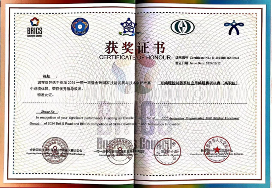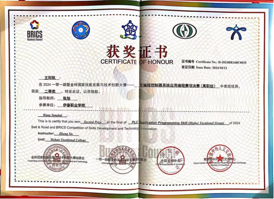 10月9日-12日,在2024年一帶一路暨金磚國家技能發(fā)展與技術(shù)創(chuàng)新大賽之可編程控制器系統(tǒng)應(yīng)用編程賽項國內(nèi)決賽中,工程應(yīng)用技術(shù)代表隊榮獲二等獎(銀牌)。