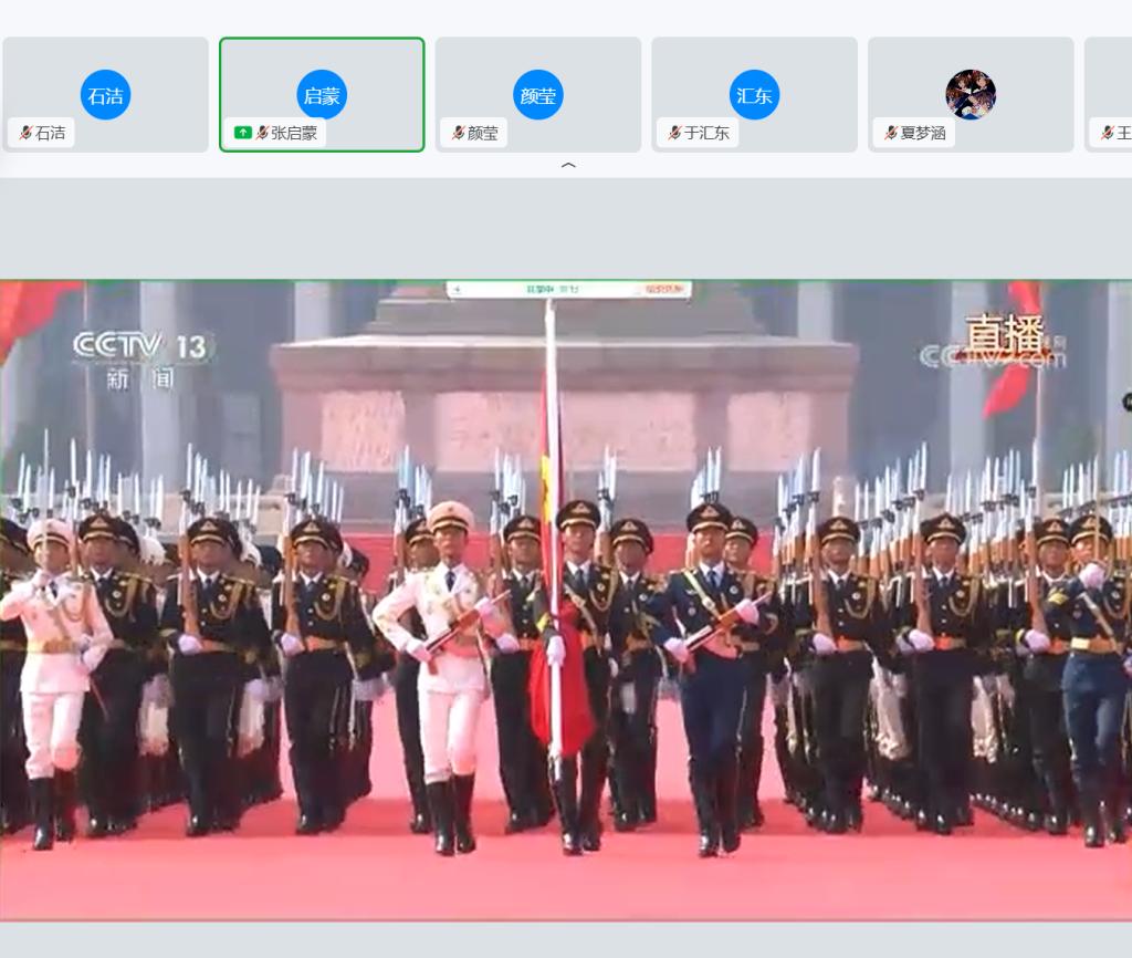 大家神情莊重,認(rèn)真聆聽習(xí)近平總書記在大會上發(fā)表的重要講話并觀看閱兵式。閱兵式上強大的陣容、恢弘的氣勢,讓大家熱血沸騰、心潮澎湃,深深為生活在這樣一個強大、和平的國度而感到驕傲與自豪。