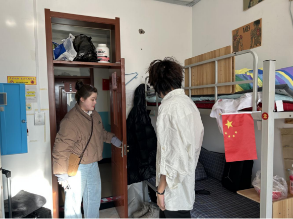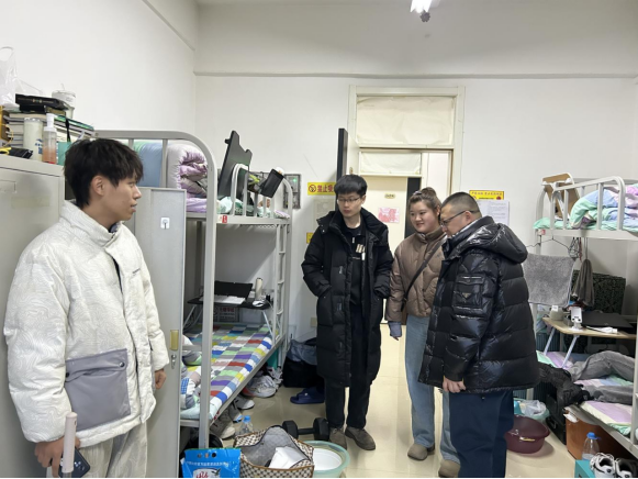 在學生宿舍,輔導員仔細查看了學生的用電情況,并向同學們耐心講解用電行為使用不當可能帶來的安全隱患。此外,對于學生宿舍的衛(wèi)生狀況,輔導員鼓勵同學們要勤通風、勤打掃,營造舒適溫馨的生活環(huán)境。