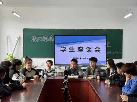 為全面了解學(xué)生學(xué)習(xí)狀況,傾聽學(xué)生心聲,進一步落實“以學(xué)生為本”的教育教學(xué)工作理念,計算機應(yīng)用技術(shù)學(xué)院于3月28日在10號樓會議室開展學(xué)生代表座談會。計算機應(yīng)用技術(shù)學(xué)院黨支部書記王洪錦、院長賈玉罡、輔導(dǎo)員王洋、劉闖以及各班級學(xué)生代表共同參加會議。