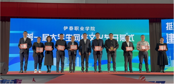 開幕式第二項(xiàng)由主持人公布伊春職業(yè)學(xué)院第一屆大學(xué)生網(wǎng)絡(luò)文化節(jié)評審團(tuán)評委名單,結(jié)合賽事實(shí)際,評審團(tuán)評委由各二級學(xué)院書記、院長、副書記、專業(yè)教師等11位成員組成,共同制定大賽評審規(guī)則,并由節(jié)楊為各位評委頒發(fā)聘書。