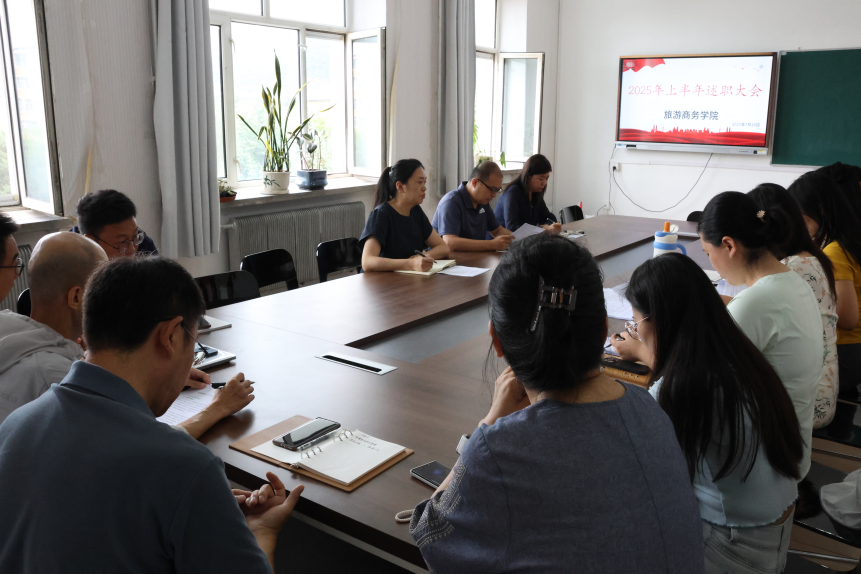 為全面總結本學期教學工作成效,梳理現(xiàn)存問題,明確下一階段教學工作方向,7月16日,旅游商務學院教學工作總結大會在11號教學樓422室召開,全體教師參加了會議,會議由院長趙莉莉主持。