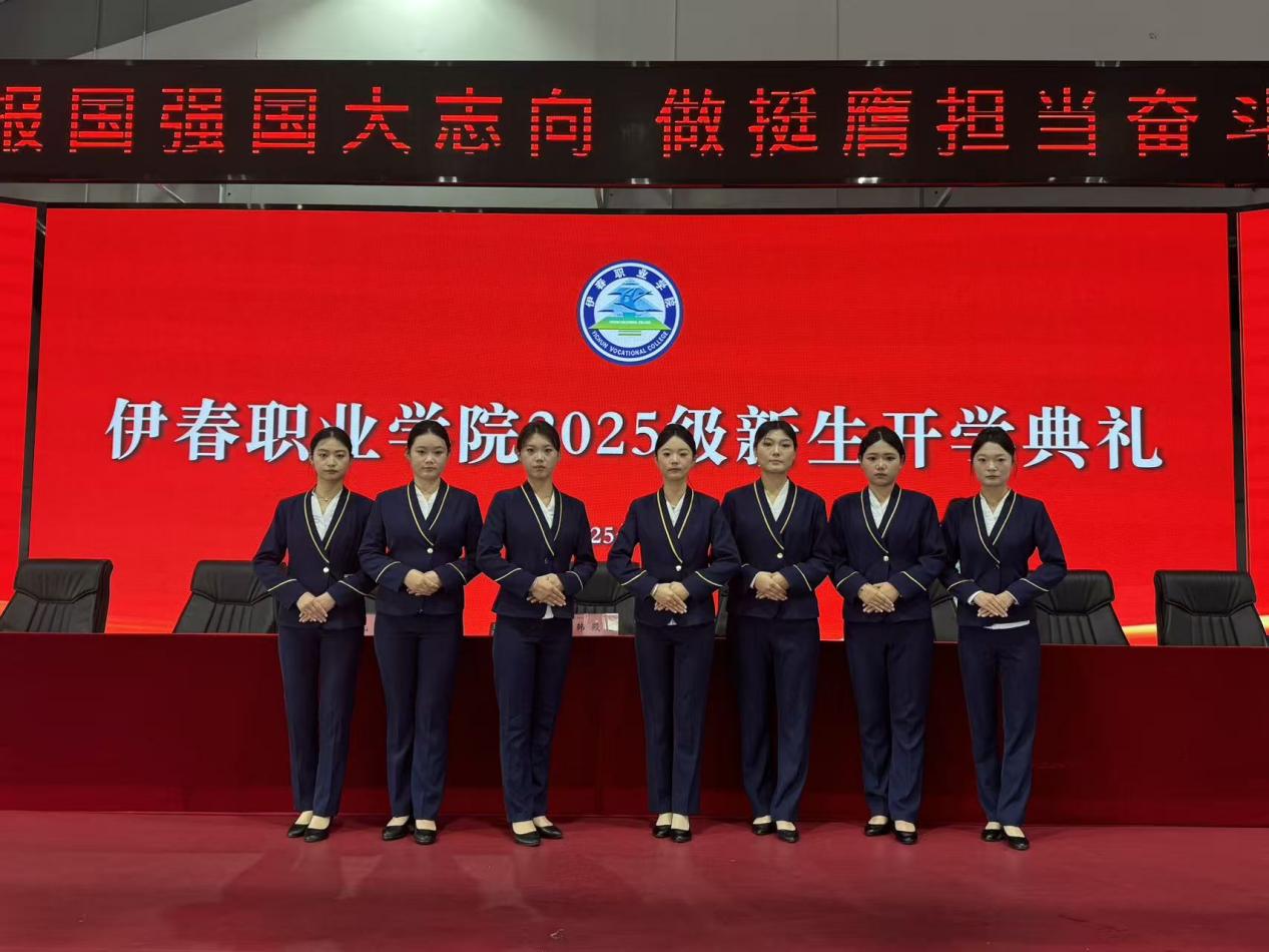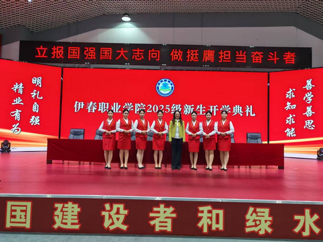 10月30日上午,伊春職業(yè)學(xué)院2025級新生開學(xué)典禮隆重舉行。旅游商務(wù)學(xué)院教師王寶才、白天達(dá)帶領(lǐng)7名學(xué)生志愿者為典禮提供禮儀服務(wù)。