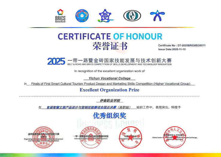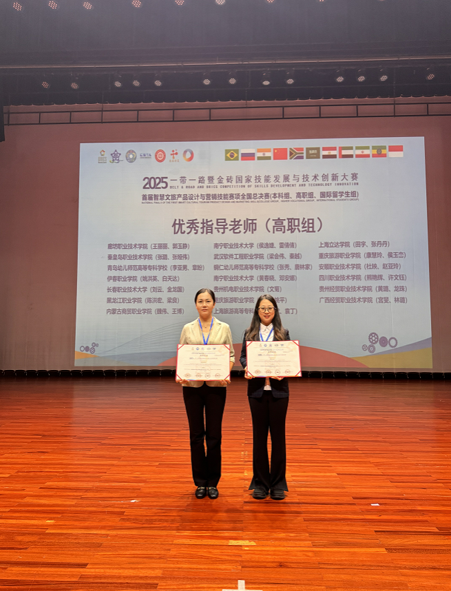 11月13日,“2025一帶一路暨金磚國家技能發(fā)展與技術(shù)創(chuàng)新大賽——首屆智慧文旅產(chǎn)品設(shè)計與營銷技能賽全國總決賽”圓滿落幕。旅游商務(wù)學(xué)院教師姚洪英、白天達(dá)帶領(lǐng)4名學(xué)生組成參賽團(tuán)隊,與來自全國的80余支隊伍同臺競技,成功斬獲大賽銀獎、優(yōu)秀組織獎,兩名教師榮獲“優(yōu)秀指導(dǎo)教師”稱號,為學(xué)校職業(yè)教育成果再添亮眼一筆。