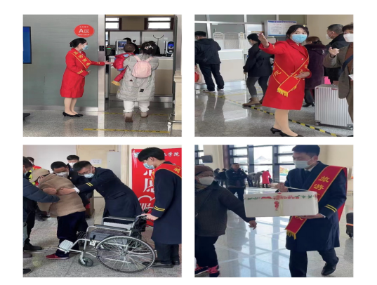 在機(jī)場(chǎng),同學(xué)們與地服人員相互配合,積極做好現(xiàn)場(chǎng)秩序維護(hù)和服務(wù)工作,在值機(jī)區(qū)域、安檢待檢區(qū)域開(kāi)展引導(dǎo)服務(wù)工作,通過(guò)合理分流、正確引導(dǎo),為旅客耐心答疑、主動(dòng)服務(wù),幫助旅客快速使用自助設(shè)備辦理乘機(jī)手續(xù),協(xié)助旅客退改簽、過(guò)檢;為母嬰室的旅客及嬰幼兒提供溫暖的厚毛毯和暖寶寶,為老年人搬運(yùn)行李等物品;在安檢候檢區(qū)積極宣傳安檢乘機(jī)常識(shí),熱情接受旅客咨詢(xún),協(xié)助老、弱、病、殘等特殊旅客提供乘機(jī)手續(xù)辦理、乘機(jī)引導(dǎo)、候機(jī)專(zhuān)屬等便利和差異化服務(wù),使旅客順利、快捷、安心出行提供服務(wù)。