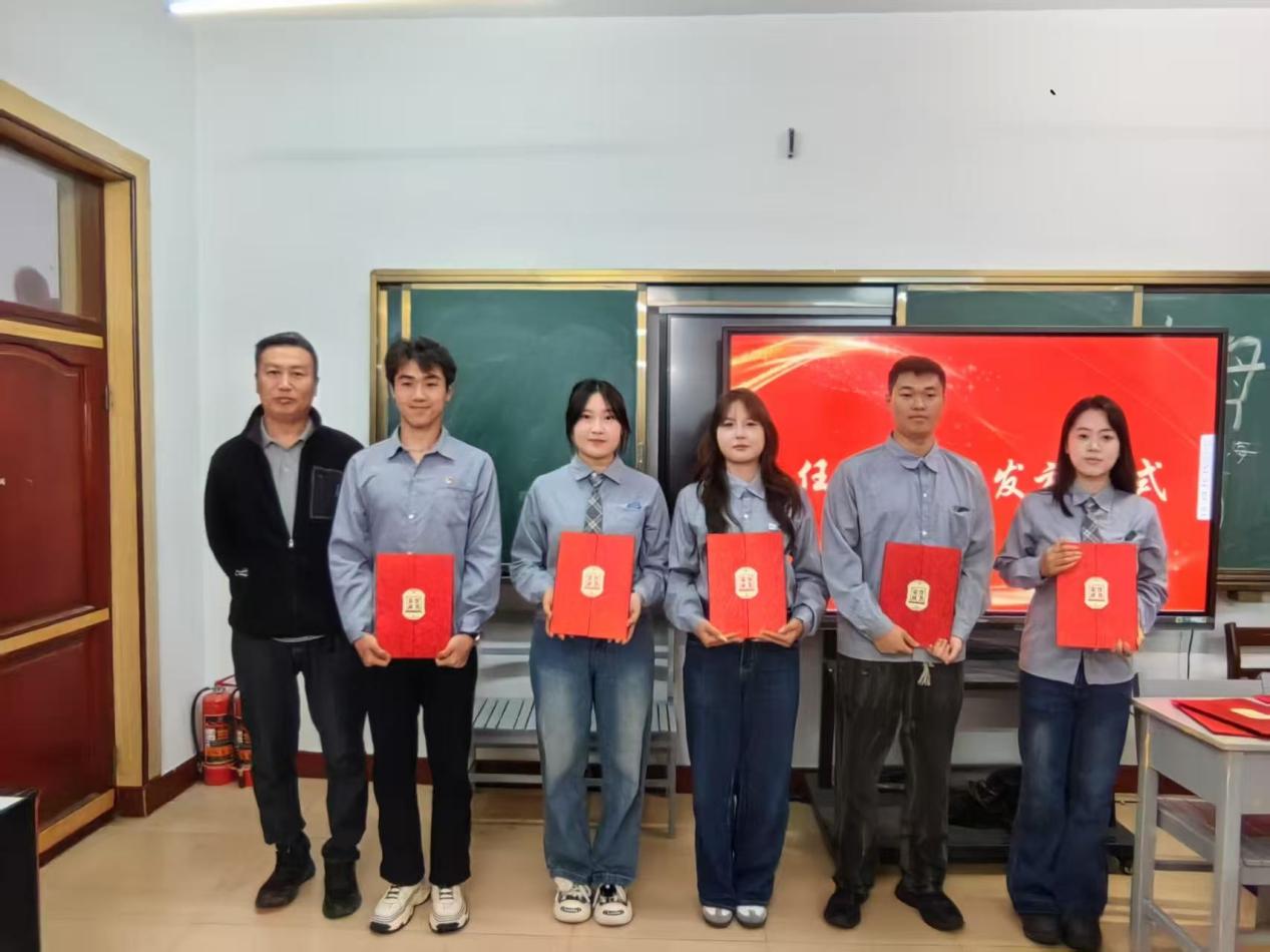 大會(huì)第三項(xiàng)舉行了隆重的任職證明頒發(fā)儀式,以此表彰第四屆學(xué)生會(huì)成員的卓越貢獻(xiàn)。過(guò)去一年,他們以高度的責(zé)任感和飽滿(mǎn)的熱情履職盡責(zé),在各項(xiàng)工作中留下了堅(jiān)實(shí)而閃亮的足跡。在熱烈的掌聲中,黨支部副書(shū)記張健、團(tuán)總支書(shū)記李洋、輔導(dǎo)員高雅涵老師共同為第四屆學(xué)生會(huì)主席團(tuán)、辦公室、宣傳部、學(xué)習(xí)部、生活權(quán)益部、社會(huì)實(shí)踐部、體育部、文藝部等代表頒發(fā)了任職證明。這份證明不僅是對(duì)過(guò)往辛勤付出的肯定,更是無(wú)私奉獻(xiàn)精神的榮譽(yù)見(jiàn)證,激勵(lì)著后來(lái)者繼續(xù)前行。