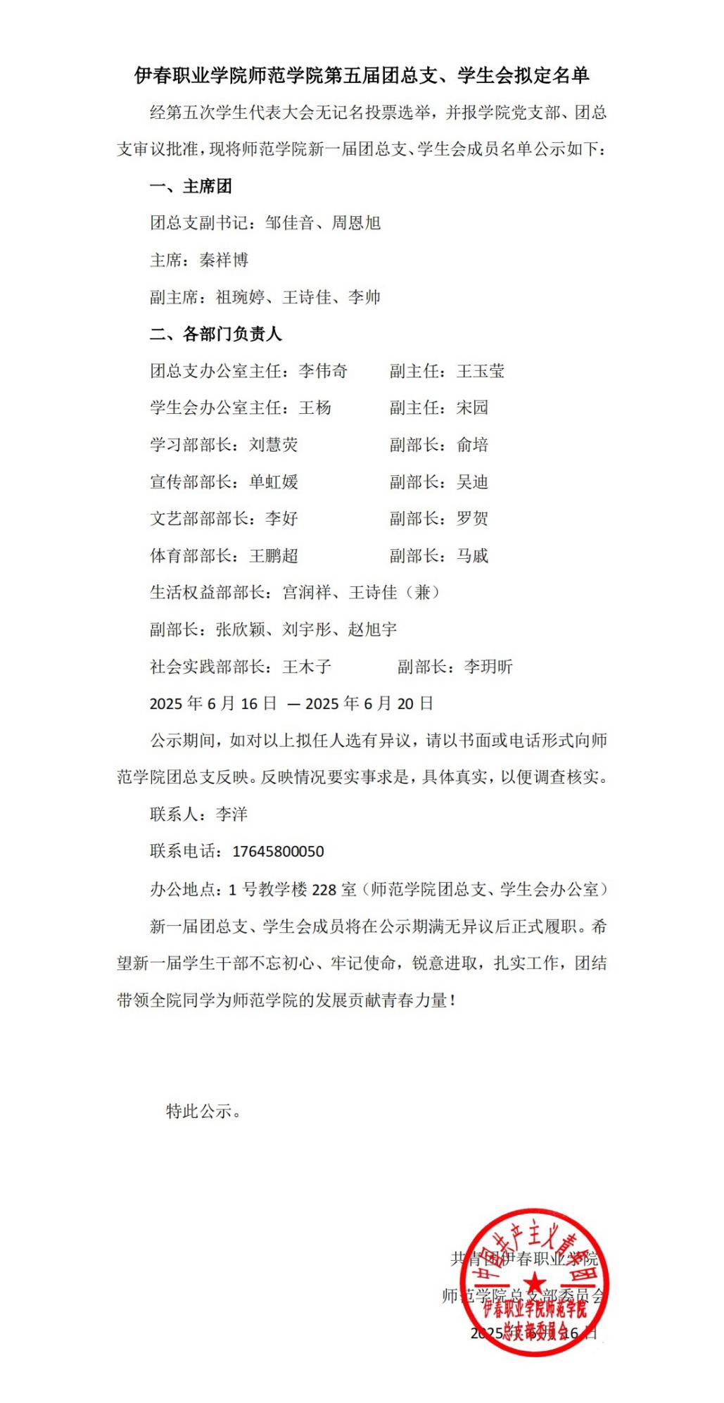 本次學(xué)生代表大會(huì)的勝利召開(kāi),是伊春職業(yè)學(xué)院師范學(xué)院學(xué)生政治生活中的一件大事。它既是對(duì)過(guò)往工作的全面總結(jié)與肯定,更是新篇章的開(kāi)啟。相信新一屆團(tuán)總支、學(xué)生會(huì)成員必將接過(guò)接力棒,承前啟后,開(kāi)拓創(chuàng)新,團(tuán)結(jié)帶領(lǐng)全院同學(xué),以更加飽滿(mǎn)的熱情和務(wù)實(shí)的作風(fēng),書(shū)寫(xiě)師范學(xué)院學(xué)生工作的嶄新輝煌!