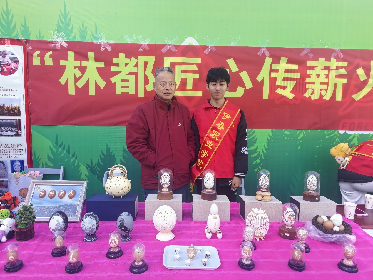 活動現(xiàn)場設(shè)在學(xué)生服務(wù)中心廣場,氛圍熱烈而鮮活。我校非遺傳承基地精心組織了伊春本土多項(xiàng)國家級、省級非遺項(xiàng)目參展,包括以“林都文化”為特色的木雕技藝、展現(xiàn)林區(qū)傳統(tǒng)智慧的樺樹皮制作技藝等。每一項(xiàng)非遺項(xiàng)目都設(shè)有專屬傳承工作室展區(qū),非遺傳承人親自介紹講解,通過“實(shí)物展示+技藝演示+現(xiàn)場教學(xué)”的模式,讓師生近距離感受非遺的獨(dú)特魅力。師范學(xué)院藝術(shù)教研室教師還結(jié)合專業(yè)教學(xué),現(xiàn)場為學(xué)生講解非遺技藝的藝術(shù)價值與傳承意義,引導(dǎo)大家從專業(yè)視角理解非遺文化,引導(dǎo)學(xué)生積極加入我校傳承工作室,在親手觸摸非遺技藝、挖掘傳統(tǒng)故事的過程中,既能解鎖木雕、蛋雕等實(shí)用技能,也能為文化傳承注入青春創(chuàng)意,讓個人成長與文化延續(xù)同頻共振。