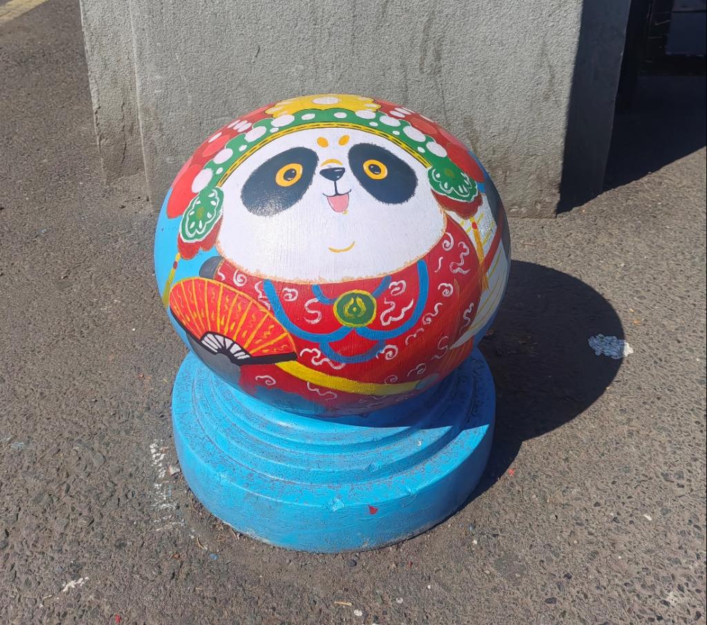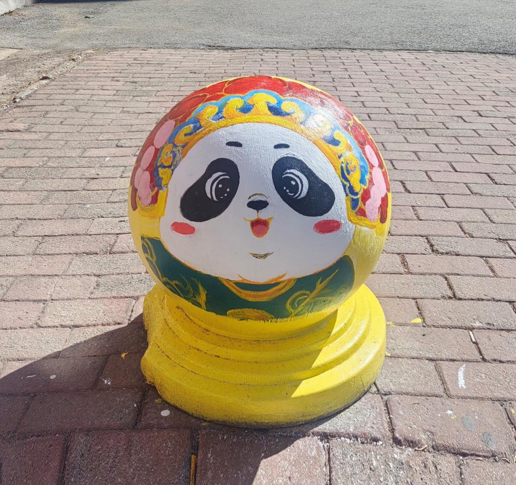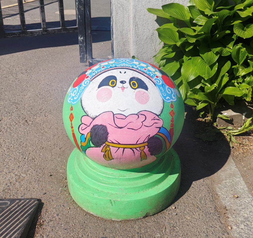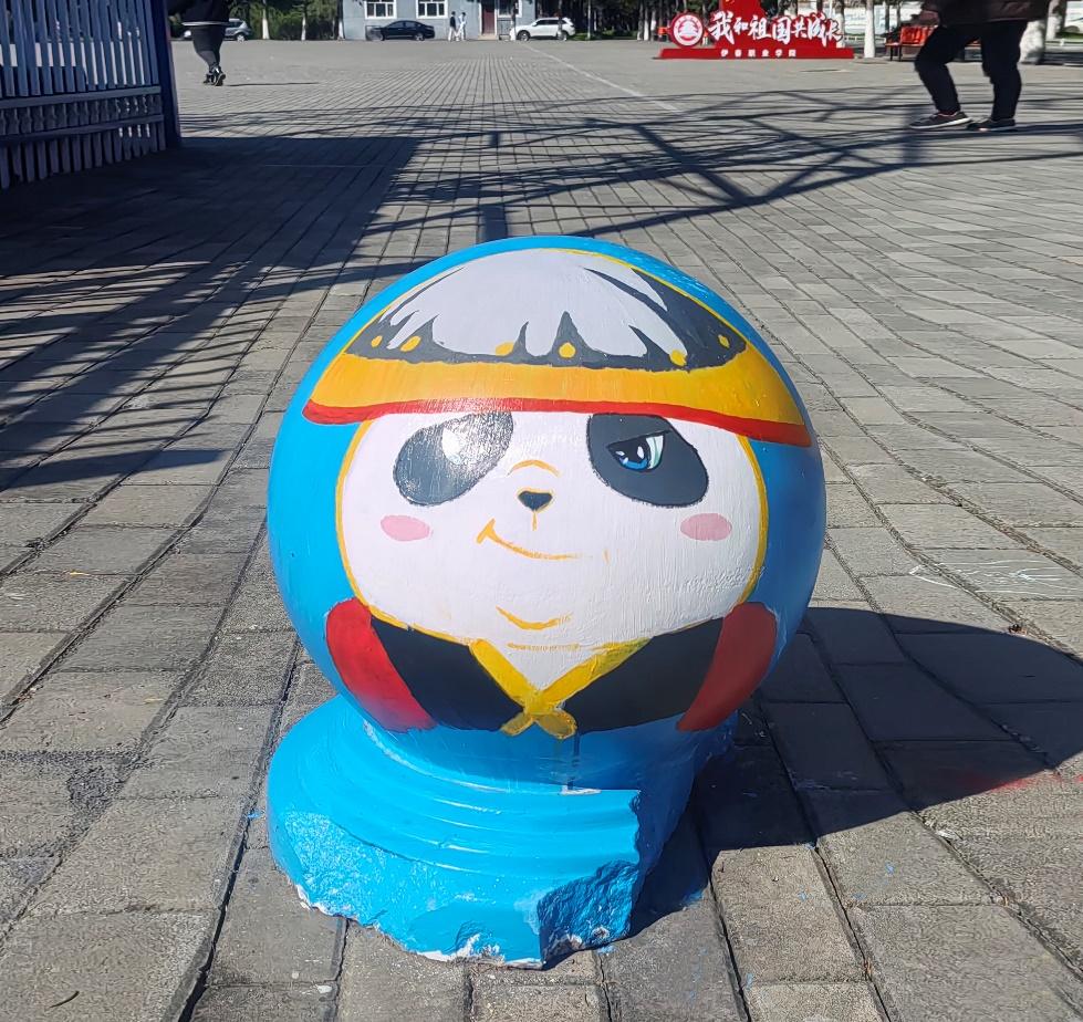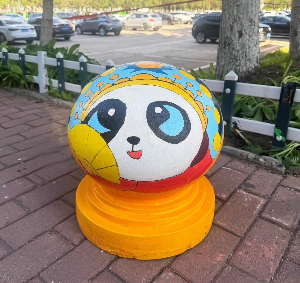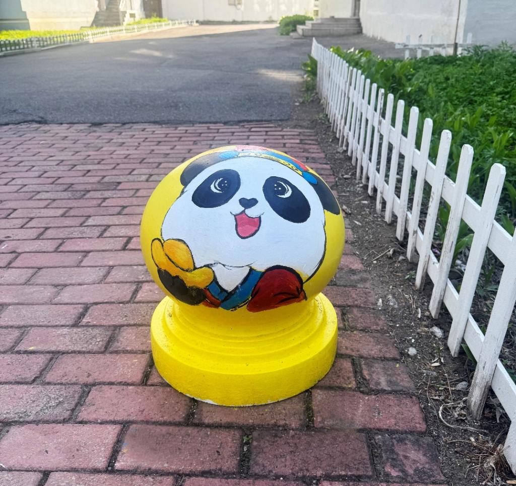 憨態(tài)可掬的熊貓形象躍然于石墩之上,學(xué)生們用畫筆將熊貓的可愛與靈動展現(xiàn)得淋漓盡致。熊貓作為國寶,深受中國人民的喜愛,是民族情感的重要寄托。它喚起了人們對國家和民族的熱愛之情,增強(qiáng)了民族自豪感和凝聚力,讓人們在文化認(rèn)同和情感共鳴中緊密相連。熊貓的形象承載著深厚的文化底蘊(yùn),如今以手繪的形式裝點(diǎn)校園,讓同學(xué)們在日常學(xué)習(xí)生活中,便能感受到傳統(tǒng)文化的親切與美好。
