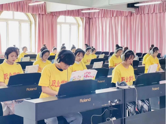 電鋼琴教室是音樂(lè)教學(xué)形式電鋼琴教室又稱為音樂(lè)教室,是利用控制系統(tǒng),由多臺(tái)電鋼琴、音樂(lè)輔助教學(xué)系統(tǒng)和音樂(lè)制作軟件而構(gòu)成的一種音樂(lè)教學(xué)形式。它集視、聽(tīng)、練為一體,改變了傳統(tǒng)的教學(xué)模式,豐富了教學(xué)內(nèi)容,增強(qiáng)了學(xué)生興趣,減輕了教學(xué)強(qiáng)度,提高了教學(xué)質(zhì)量。