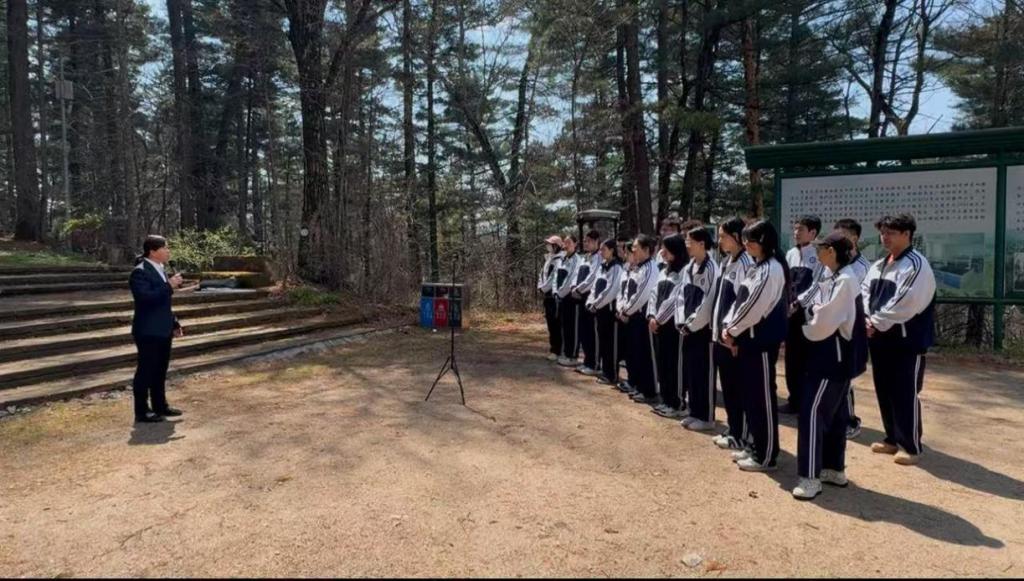 5月10日,師生參與了保護(hù)區(qū)主辦的紅松大講堂主題活動(dòng)、主題思政課,參觀了標(biāo)本紀(jì)念館、張子良紀(jì)念館。主題思政課由涼水保護(hù)區(qū)孫虎科長(zhǎng)帶領(lǐng)師生沿著“少奇小路”,詳細(xì)為同學(xué)們講解原始紅松林的生態(tài)奧秘,讓大家近距離感受森林獨(dú)特魅力。思政部王彩鳳教授在紅松母樹(shù)林前,以“重走先輩路,厚植生態(tài)擔(dān)當(dāng)”為主題,給同學(xué)們上了一堂別開(kāi)生面的思政課,將生態(tài)文明思想與愛(ài)國(guó)情懷、責(zé)任擔(dān)當(dāng)巧妙融合,喚醒林區(qū)學(xué)子以前輩們?yōu)榘駱樱瑸榻ㄔO(shè)美麗中國(guó)貢獻(xiàn)自己的青春力量。