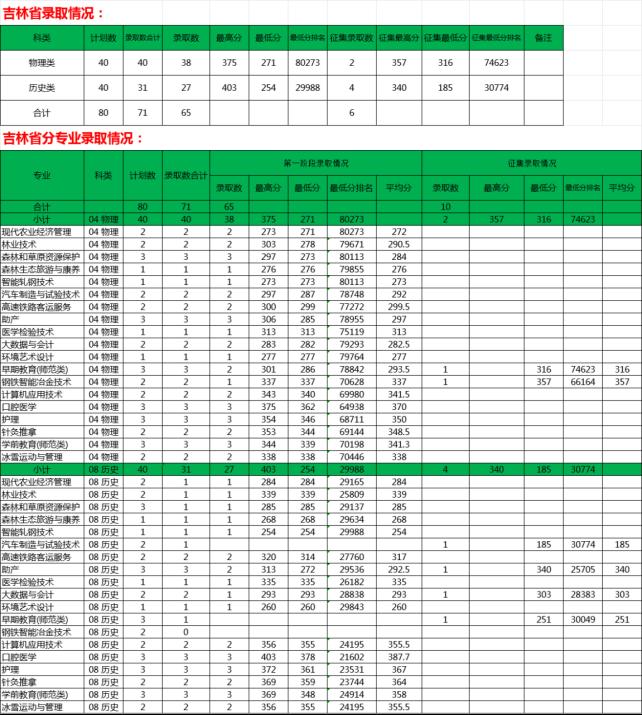 2024年吉林省錄取情況