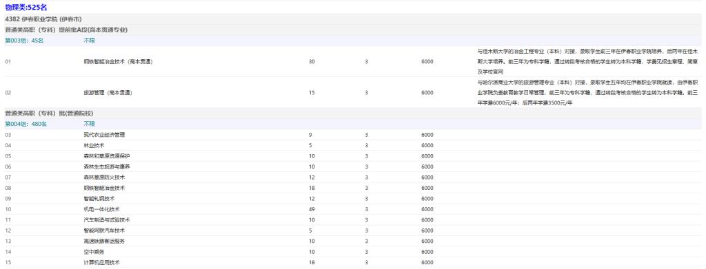 伊春職業(yè)學院2025年黑龍江省招生計劃