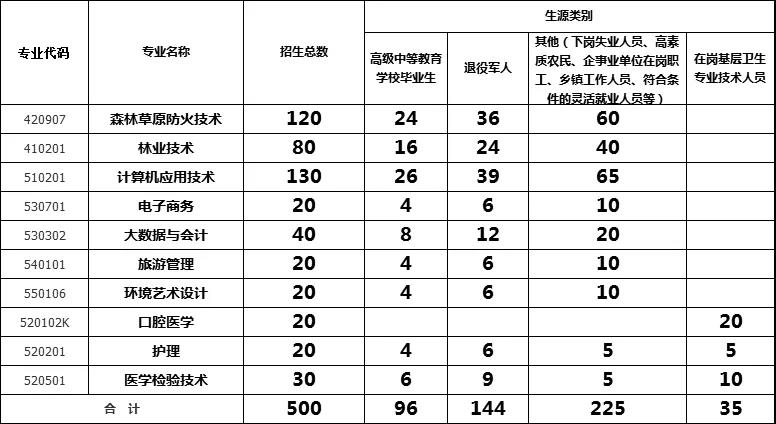 伊春職業(yè)學(xué)院2021年高職擴招分專業(yè)分類別招生計劃