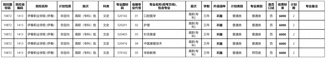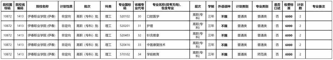 伊春職業(yè)學(xué)院2024年山西省招生計劃