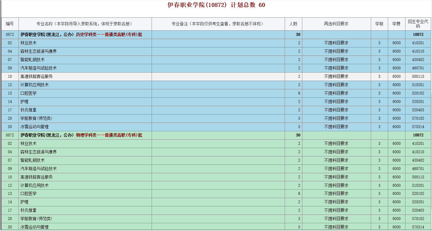 伊春職業(yè)學(xué)院2024年遼寧省招生計劃