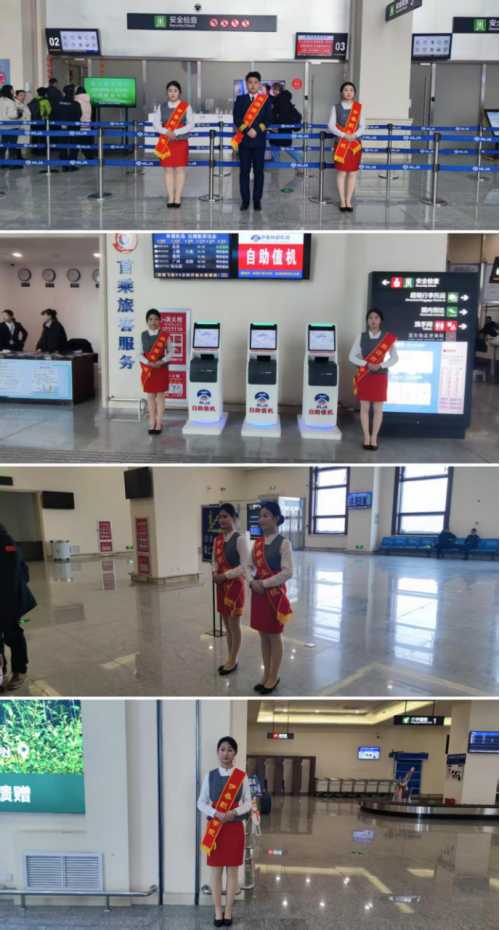 上午,志愿者們早早地抵達(dá)伊春林都機(jī)場,與機(jī)場工作人員對接后,按照機(jī)場工作崗位服務(wù)流程分成了引導(dǎo)咨詢組、秩序維護(hù)組、特殊旅客幫扶組和值機(jī)助理組等四個服務(wù)組,之后志愿者們投入到了緊張而有序的服務(wù)工作中。