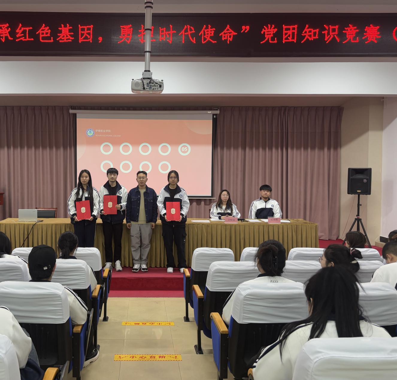 4月10日晚,伊春職業(yè)學(xué)院“傳承紅色基因,勇?lián)鷷r(shí)代使命”團(tuán)學(xué)干部黨團(tuán)知識競賽在圖書館一樓會(huì)議室圓滿落幕,來自各二級學(xué)院(部)的36名參賽選手以飽滿的熱情、扎實(shí)的知識儲(chǔ)備在賽場上展開激烈的角逐,充分展現(xiàn)了我校團(tuán)學(xué)干部積極向上的精神風(fēng)貌。