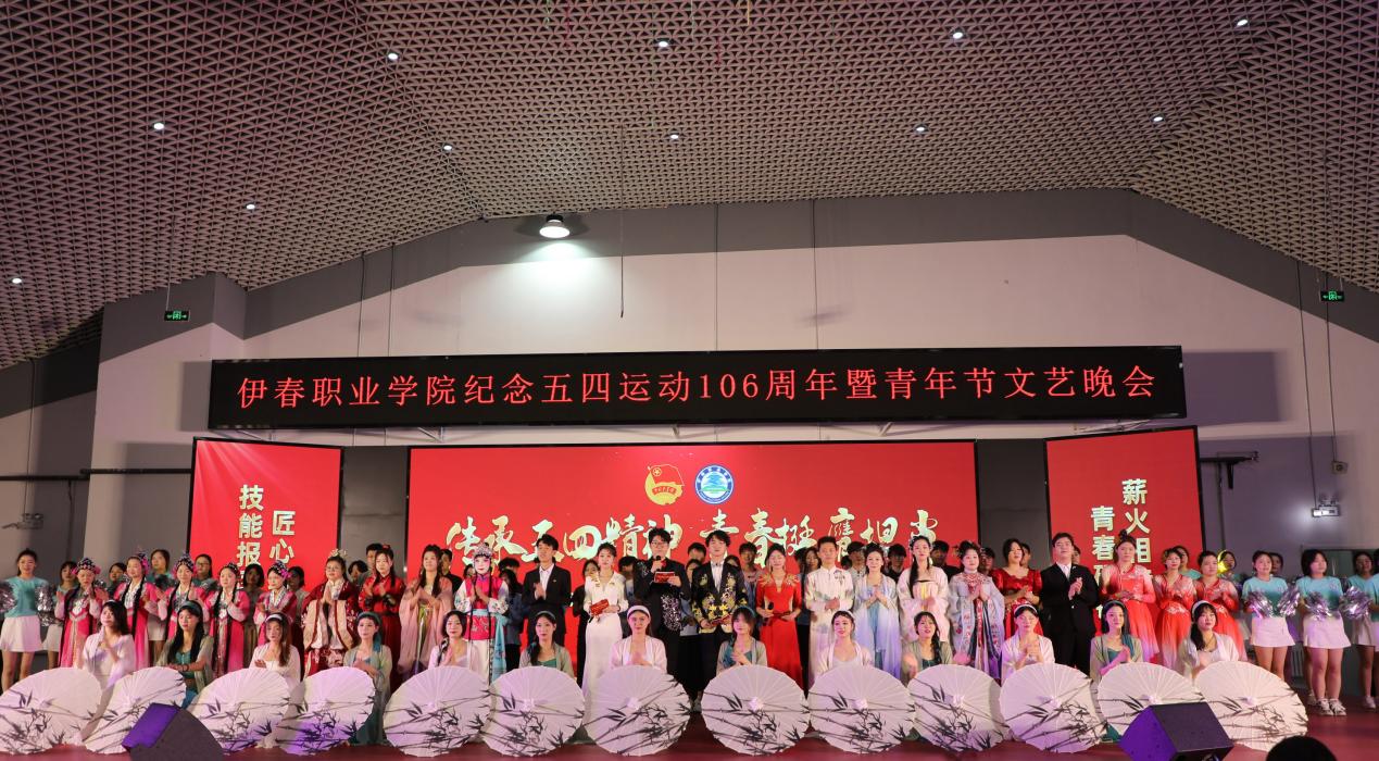 崢嶸歲月,韶光似箭;逐夢(mèng)青春,風(fēng)華正茂。為紀(jì)念五四運(yùn)動(dòng)106周年,傳承歷久彌新的五四精神,展現(xiàn)新時(shí)代青年的青春風(fēng)采,4月29日晚,伊春職業(yè)學(xué)院舉辦“傳承五四精神 青春挺膺擔(dān)當(dāng)”紀(jì)念五四運(yùn)動(dòng)106周年暨青年節(jié)文藝晚會(huì)。團(tuán)市委相關(guān)領(lǐng)導(dǎo),伊春職業(yè)學(xué)院黨委班子成員,各部門負(fù)責(zé)人,二級(jí)學(xué)院(部)黨支部書記、院長(zhǎng)及全體學(xué)工人員出席活動(dòng)。來自我校近千余名師生雅集一堂,共同以藝術(shù)之名致敬歷史,以青春之力續(xù)寫華章。