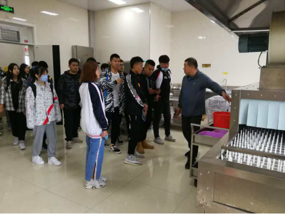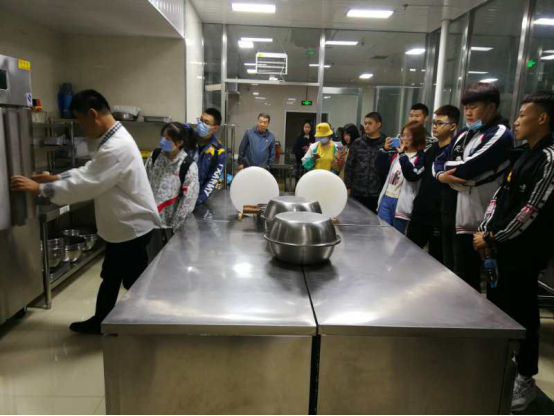 會后學(xué)生對食堂廚房餐具的洗消、主副食品的制作流程進(jìn)行全程參觀,并了解了采購、食品留樣等相關(guān)內(nèi)容。