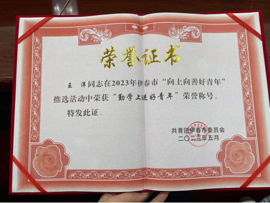 計算機應(yīng)用技術(shù)學(xué)院團總支書記、輔導(dǎo)員王洋榮獲2023年伊春市“勤奮上進好青年”榮譽稱號。