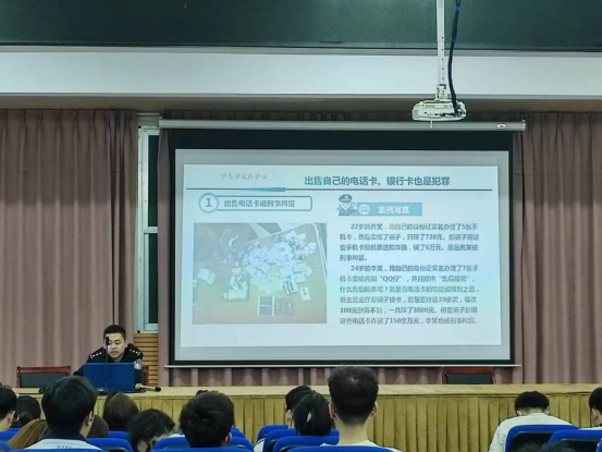 伊春市公安局反詐中心李繼鵬警官通過大量真實案例,以案說法,以生動的語言描述了各種案發(fā)語境,巧妙地利用學(xué)校生活場景向同學(xué)們展現(xiàn)了各式各樣的電信詐騙手段,著重對“網(wǎng)購?fù)丝?/span>”“刷單返利”“冒充熟人”“殺豬盤”等當(dāng)前校園高發(fā)詐騙類型及特點進行了講解,并給出了有效的應(yīng)對策略,讓同學(xué)們?nèi)媪私庹莆赵p騙分子的慣用伎倆,進而提升同學(xué)們的防詐、反詐意識。同時,他還提醒同學(xué)們下載并用好“國家反詐中心”APP,遇到緊急情況第一時間撥打96110反詐專線電話;要把學(xué)到的反詐騙知識宣傳給周圍的人,讓更多人遠離詐騙。講座生動活潑,有案例、有數(shù)據(jù)、深入淺出道出當(dāng)前我們生活的網(wǎng)絡(luò)信息時代,面臨的網(wǎng)絡(luò)詐騙嚴峻形勢及花樣不斷翻新的詐騙手法,并總結(jié)出幾類常見的詐騙犯罪形式及防范措施,提醒學(xué)生們在日常生活中增強安全防范意識,不要接聽陌生人的電話,如遇情況及時報警。