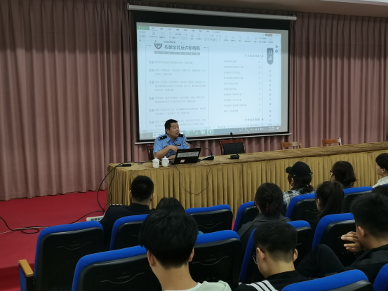 為深入推進(jìn)校園安全工作,增強(qiáng)學(xué)生的法律意識,學(xué)習(xí)反恐知識,遏制校園網(wǎng)絡(luò)詐騙活動,增強(qiáng)學(xué)生防騙意識和識騙能力,營造文明、平安、和諧的校園育人環(huán)境。9月11日,保衛(wèi)處、學(xué)工部組織了專題講座,邀請伊美公安分局為全校各班級的班長進(jìn)行法制教育安全知識講座。以此為起點(diǎn),開啟了新學(xué)期“開學(xué)第一課”。