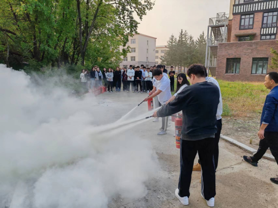 最后,在二公寓后空曠地組織了干粉滅火器滅火實(shí)操演練。程生志講解了干粉滅火器“提、拔、握、壓”四步使用法和滅火中的注意事項(xiàng)。面對熊熊燃燒的火堆,宿管員、消防疏散員、保安員均能熟練掌握使用消防器材,實(shí)際操作滅火器,將燃起的火焰迅速撲滅,達(dá)到了滅火實(shí)操預(yù)期效果。