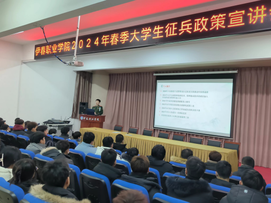 為全面學習貫徹習近平強軍思想,把習近平總書記關于加強和改進兵役工作的重要指示批示精神落在實處,進一步提升我校青年學子國防意識,激發(fā)學生參軍報國熱情,擴大征兵宣傳覆蓋面和影響力,切實做好我校2024年度征兵工作,12月18日,學生工作部在圖書館一樓會議室組織召開2024年度春季征兵政策宣講會。學生工作部副部長(校征兵工作站站長)趙小澤同志擔任主講,各二級學院有應征入伍意向的150余名同學參加宣講會。