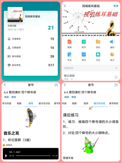 《視唱練耳基礎(chǔ)》課程是師范學(xué)院進(jìn)入高職教學(xué)資源庫(kù)的第二門課,標(biāo)志著師范學(xué)院音樂(lè)教育專業(yè)的課程建設(shè)再上新臺(tái)階。作為音樂(lè)教育專業(yè)的核心課程,音樂(lè)表演、音樂(lè)創(chuàng)作、音樂(lè)理論研究工作者的必修基礎(chǔ)課程,《視唱練耳基礎(chǔ)》上線便得到國(guó)內(nèi)本??圃盒5臍g迎,截止發(fā)稿前,該課程已被國(guó)內(nèi)15所院校使用。