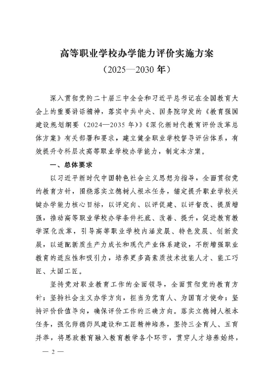 高等職業(yè)學校教育教學關(guān)鍵要素評估國家基本框架