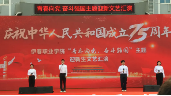 開學(xué)典禮暨軍訓(xùn)匯演結(jié)束后,慶祝中華人民共和國成立75周年暨“青春向黨 奮斗強(qiáng)國”主題迎新文藝匯演正式開始。