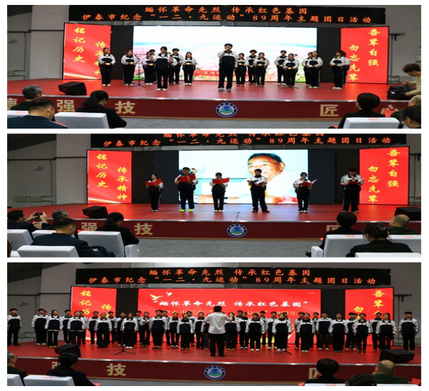 活動在大合唱《祖國不會忘記》中拉開帷幕,深情的旋律中包含著對黨的深厚感情。在詩朗誦《我心中的“一二·九”》《毛澤東詩詞組歌》《林業(yè)三師在伊春、馬永順精神永流傳》等節(jié)目中,青年學(xué)生們的聲音或抑揚(yáng)頓挫,或鏗鏘有力,或輕柔舒緩地朗讀,充分表達(dá)了青年們銘記歷史、熱愛祖國的情懷和報(bào)效祖國、服務(wù)人民的決心。合唱《送別·長亭外》《我愛你中國》《國家》每一個(gè)音符都跳躍著青春的旋律,每一句歌詞都飽含著對祖國的深情厚誼,唱出了對祖國母親的真摯情感和深情贊頌。讀書分享《小城三月》訴說了舊時(shí)代傳統(tǒng)女性受新文化影響后覺醒反抗的過程,讓我們感受到了民族的覺醒與時(shí)代的脈搏。歌曲《歌唱祖國》更是將現(xiàn)場氣氛推向了高潮,讓同學(xué)們在嘹亮的歌聲中感受祖國的繁榮昌盛和中華兒女的驕傲與自豪。