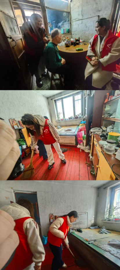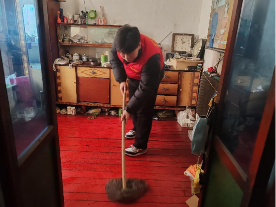 社區(qū)工作人員首先介紹了老年人基本情況,隨后帶領(lǐng)師生志愿者到老人家中走訪。在探訪過程中,志愿者們與老人親切交流,耐心傾聽他們的生活需求和困難,讓老人們真切感受到久違的陪伴與尊重。了解到部分老人年邁體弱,在日常家務(wù)中感到力不從心,志愿者們主動(dòng)幫他們打掃房間、擦拭灰塵。