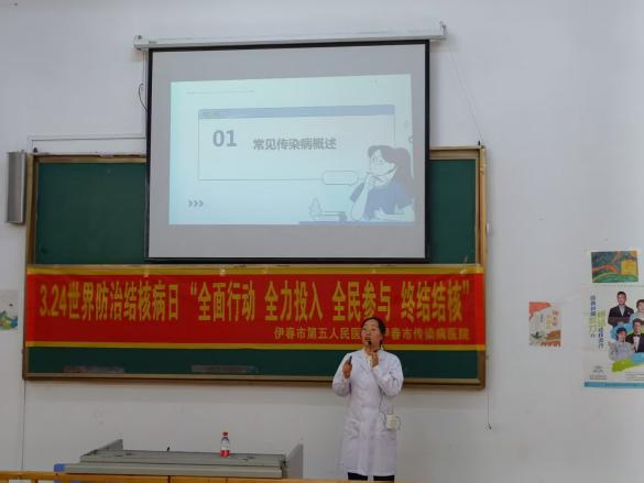 春季由于氣溫多變、空氣濕度增大,細(xì)菌、病毒等病原體易于滋生和傳播,是呼吸道傳染病高發(fā)季節(jié)。為筑牢校園健康防線,提升學(xué)生春季傳染病防控意識,在第30個(gè)“世界防治結(jié)核病日”到來之際,伊春職業(yè)學(xué)院學(xué)生處、護(hù)理學(xué)院聯(lián)合伊春市第五人民醫(yī)院結(jié)核科于2025年3月20日開展了春季傳染病防控知識講座,300余名學(xué)生參加。
