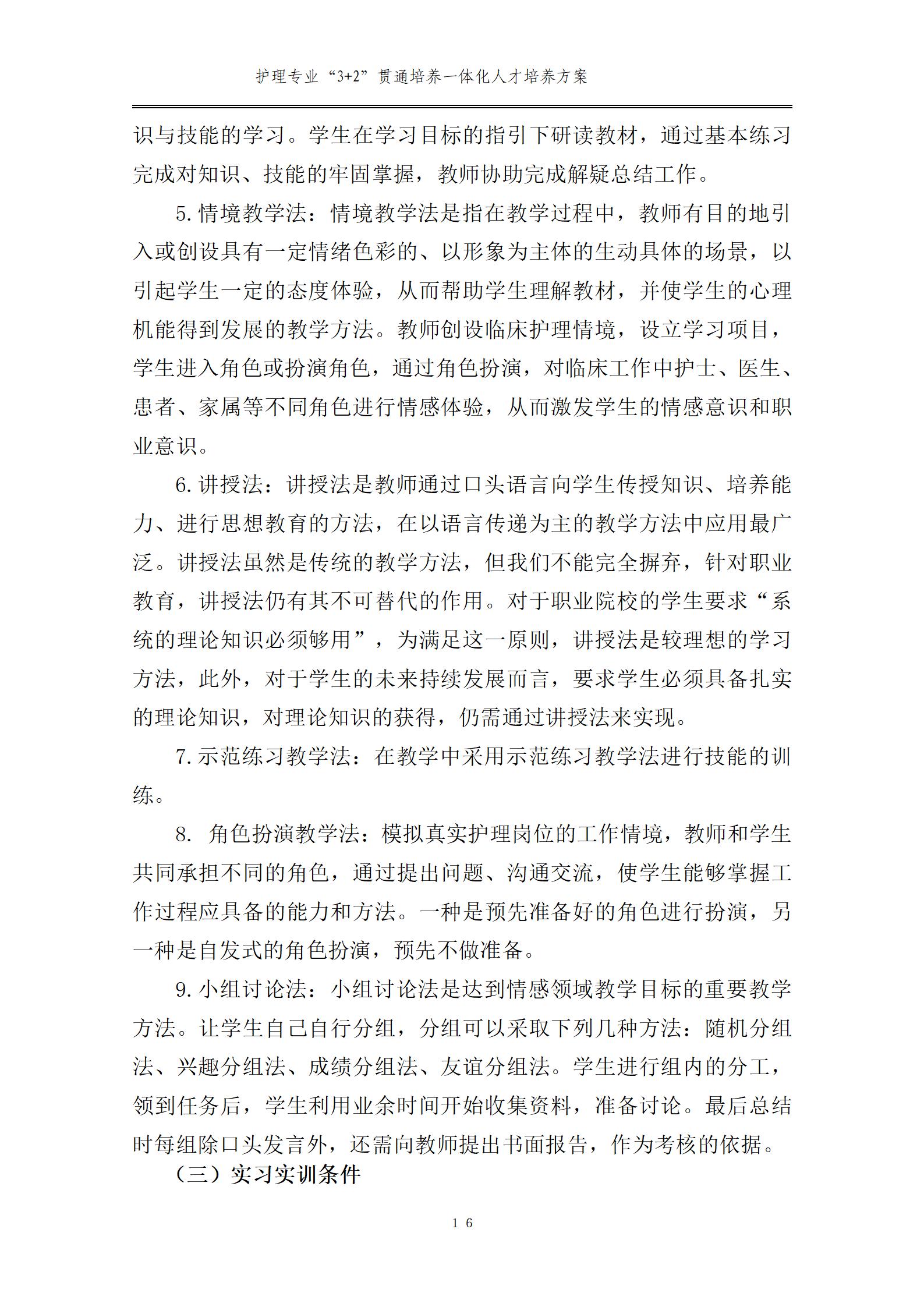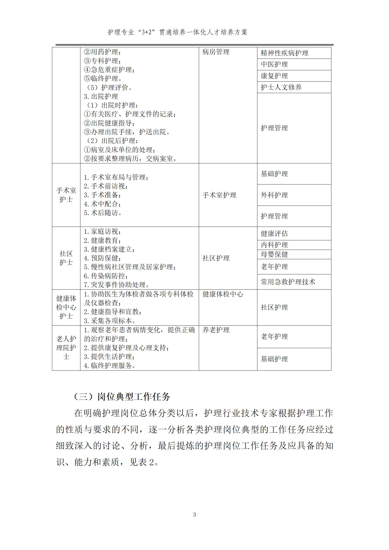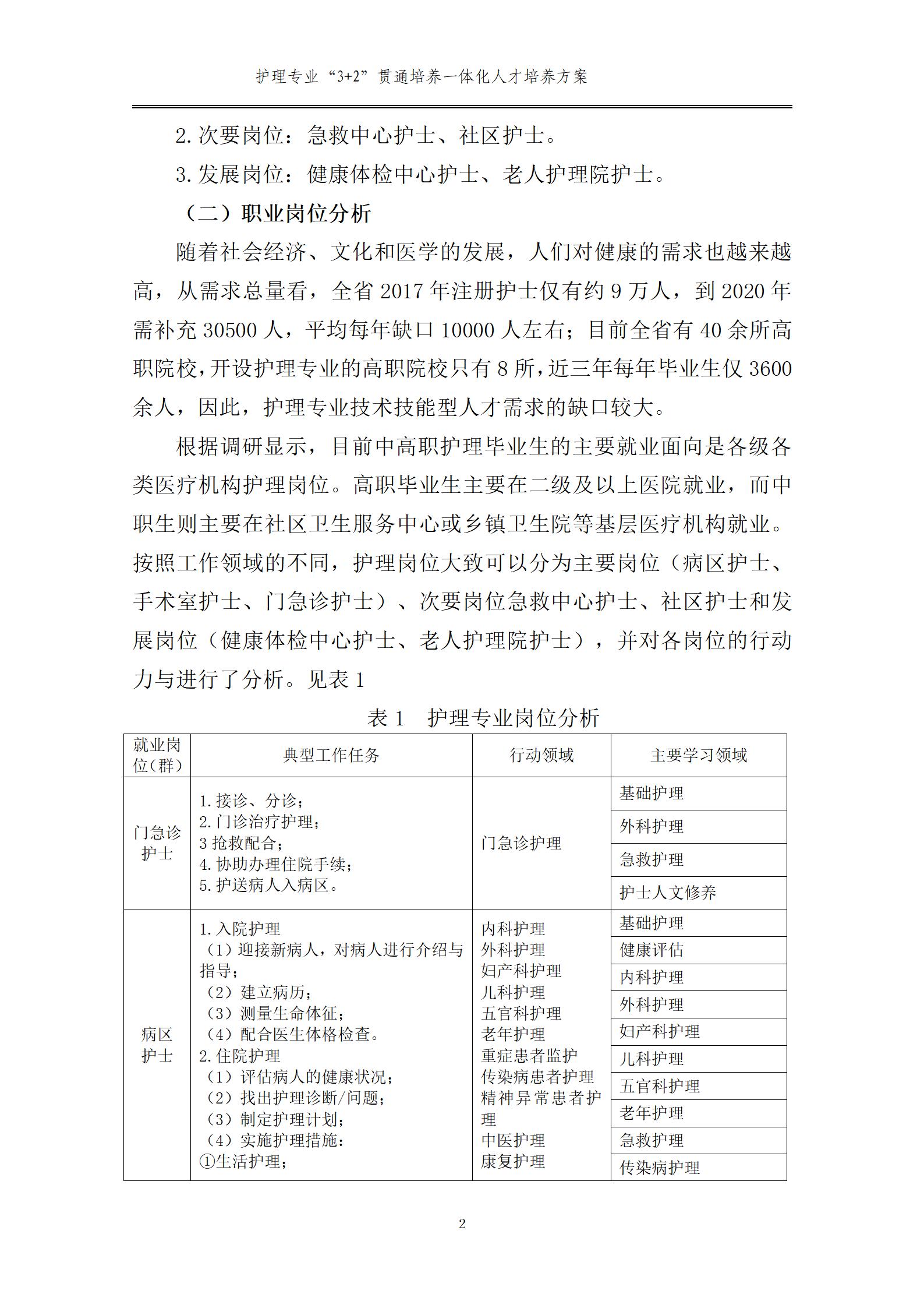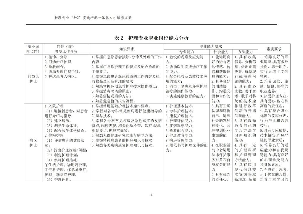 護(hù)理專業(yè)一體化人才培養(yǎng)方案