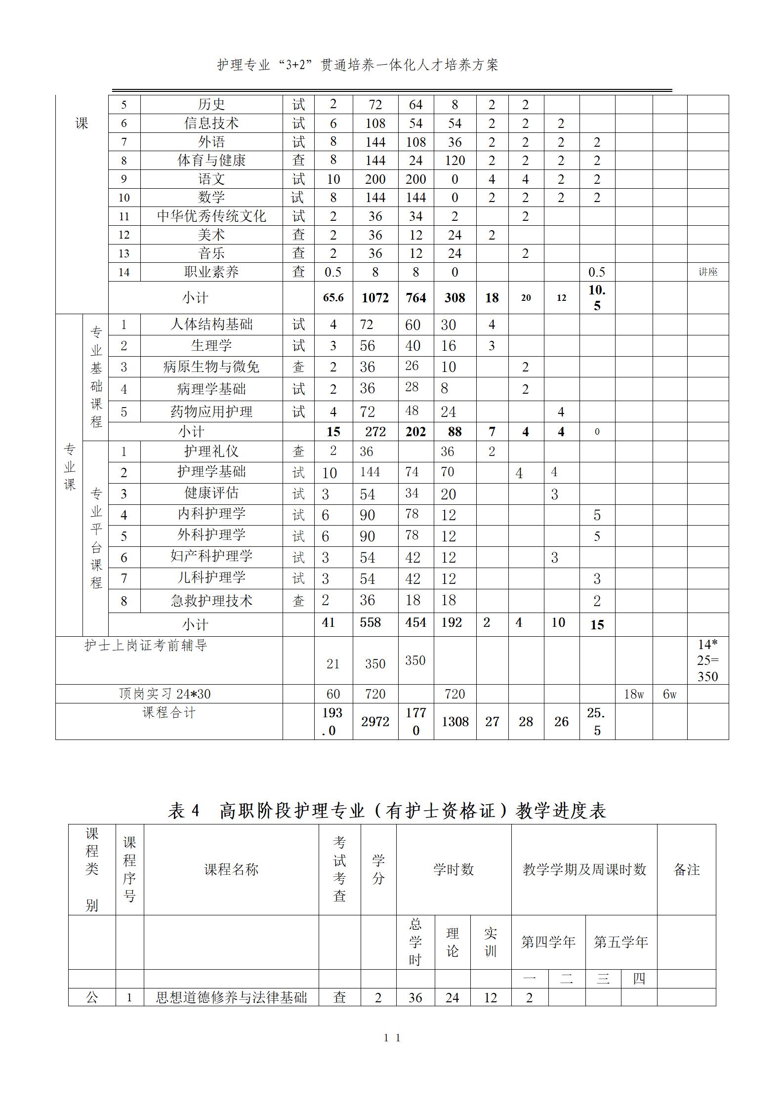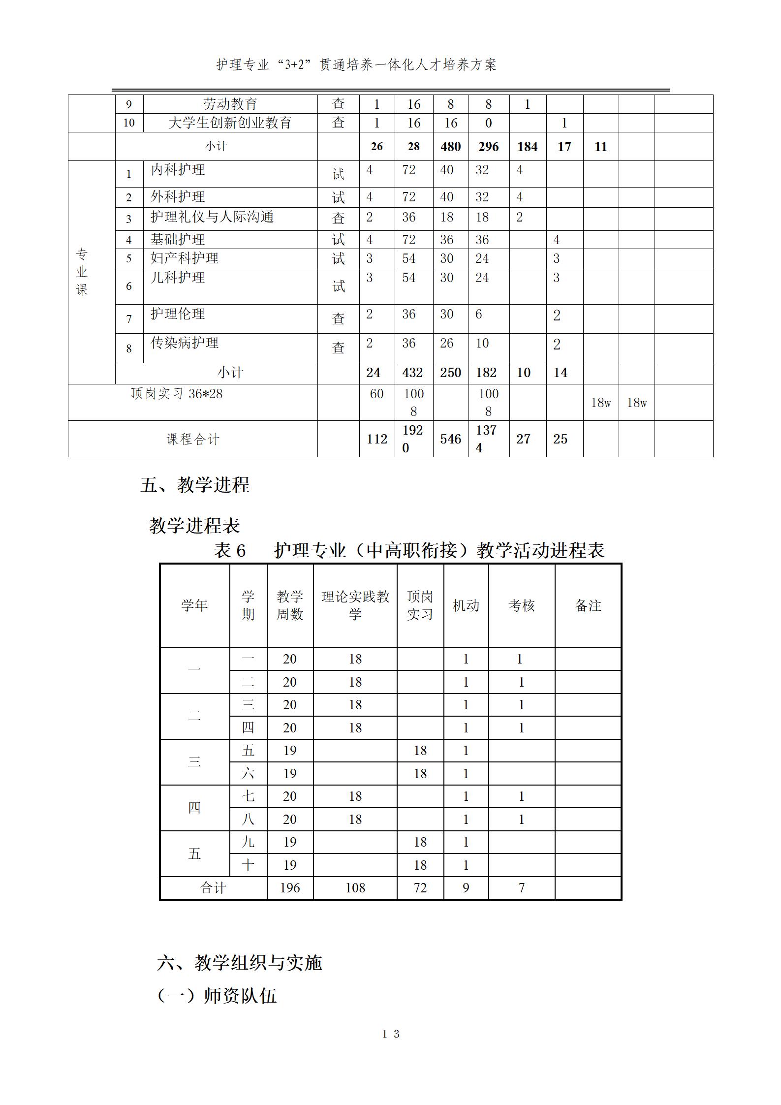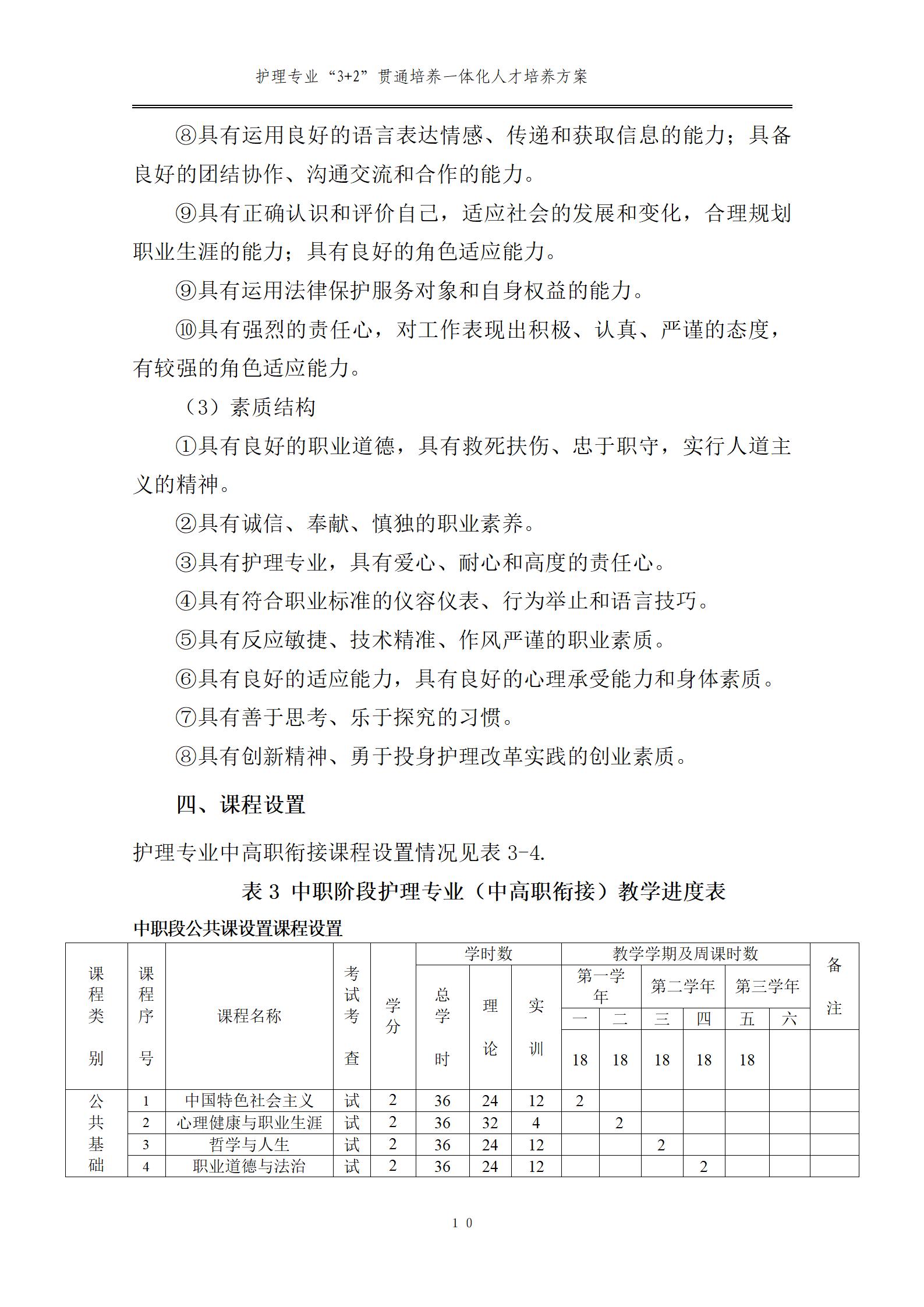 護(hù)理專業(yè)一體化人才培養(yǎng)方案
