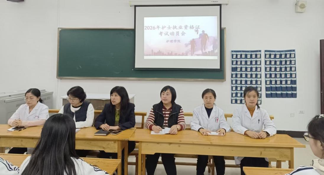 10月29日下午,護理學院在1號教學樓召開2026年護士執(zhí)業(yè)資格證考試動員會,旨在收集教學意見和建議、分析成績問題、明確改進方向并部署教學工作。會議由護理學院院長韓金華主持,護理學院黨支部書記趙麗娜、護考培訓教師、輔導員及2025級護理3+2中高職貫通培養(yǎng)高職階段9-12班全體學生參會。