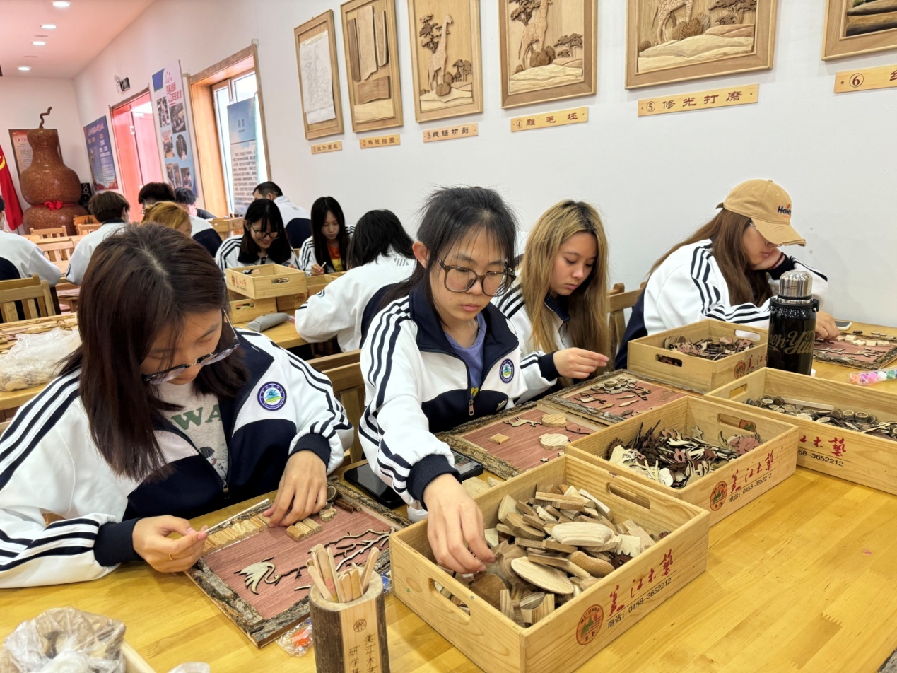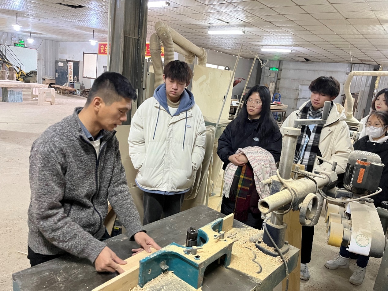 學(xué)生在美江木藝實(shí)訓(xùn)基地見習(xí)