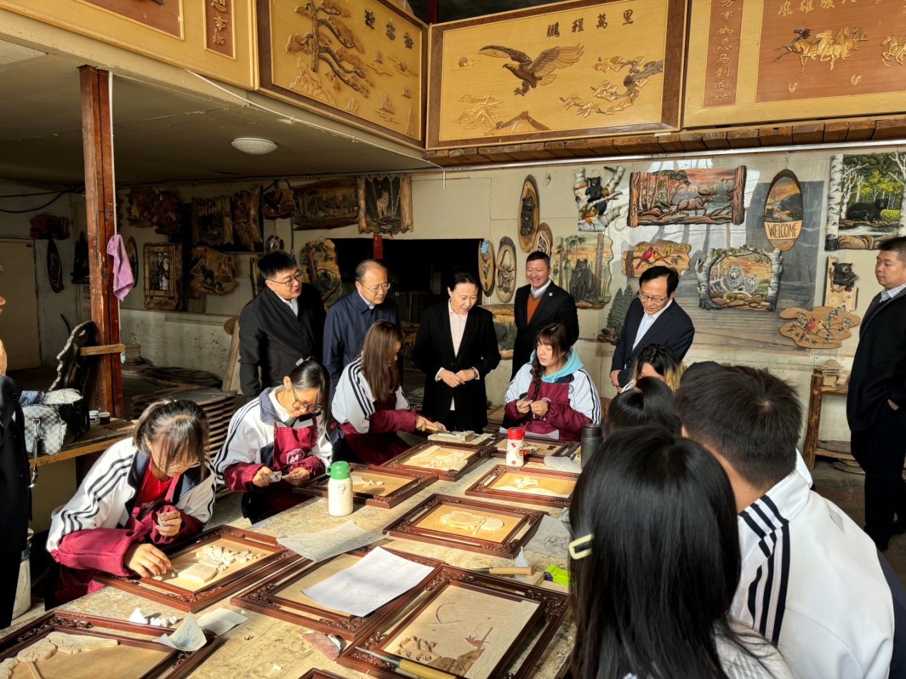 市領(lǐng)導(dǎo)及校領(lǐng)導(dǎo)到美江木藝參觀