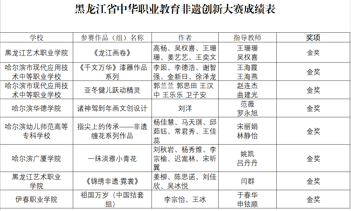 職教育工匠,雙創(chuàng)筑夢想。11月23日,第二屆黑龍江省中華職業(yè)教育創(chuàng)新創(chuàng)業(yè)大賽暨首屆黑龍江省中華職業(yè)教育非遺創(chuàng)新大賽在哈爾濱圓滿落下帷幕。本次大賽由省委統(tǒng)戰(zhàn)部、省教育廳、省民宗委、省人社廳、省文旅廳指導(dǎo),省中華職業(yè)教育社主辦,黑龍江藝術(shù)職業(yè)學(xué)院承辦,旨在激發(fā)龍江職教創(chuàng)新創(chuàng)業(yè)活力,推動非遺文化傳承創(chuàng)新,打造全省職業(yè)院校師生創(chuàng)新創(chuàng)業(yè)和文化交流平臺。