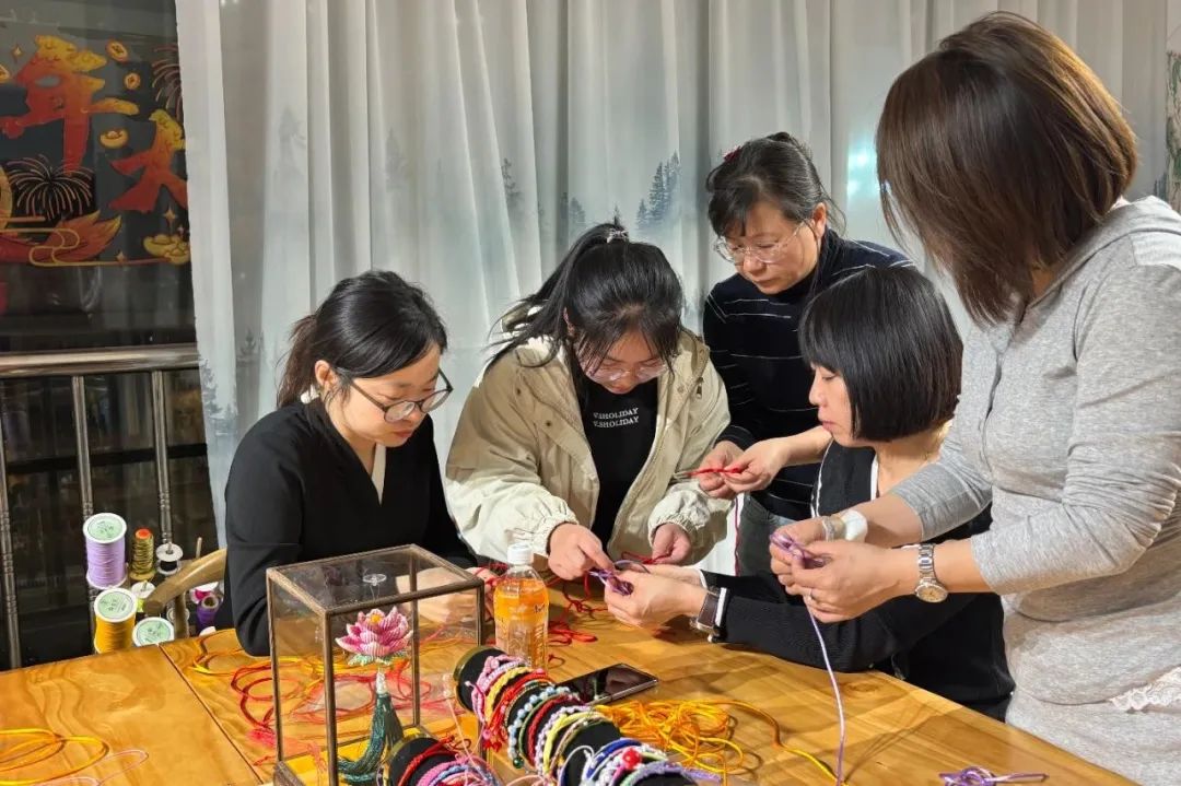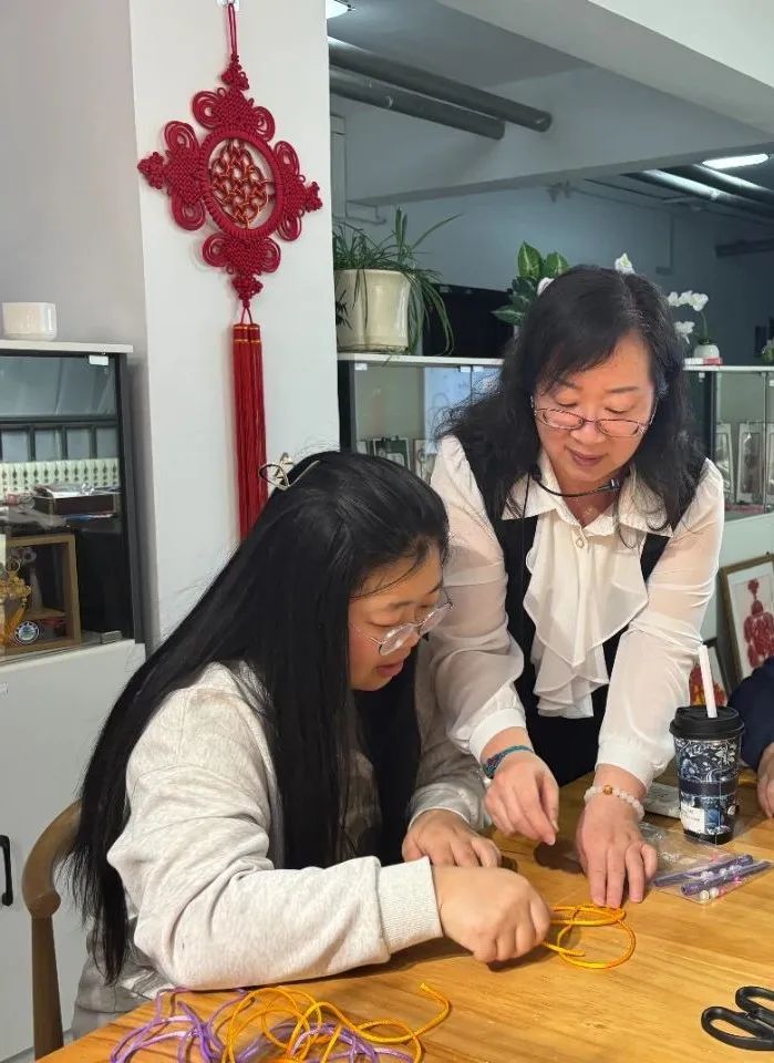 學(xué)員們?nèi)褙炞?,互相幫助,現(xiàn)場(chǎng)充滿歡聲笑語(yǔ)。看著親手編織的中國(guó)結(jié)逐漸成型,大家對(duì)傳統(tǒng)文化有了更深的熱愛,在潛移默化中感受到了中國(guó)傳統(tǒng)民間藝術(shù)的魅力。