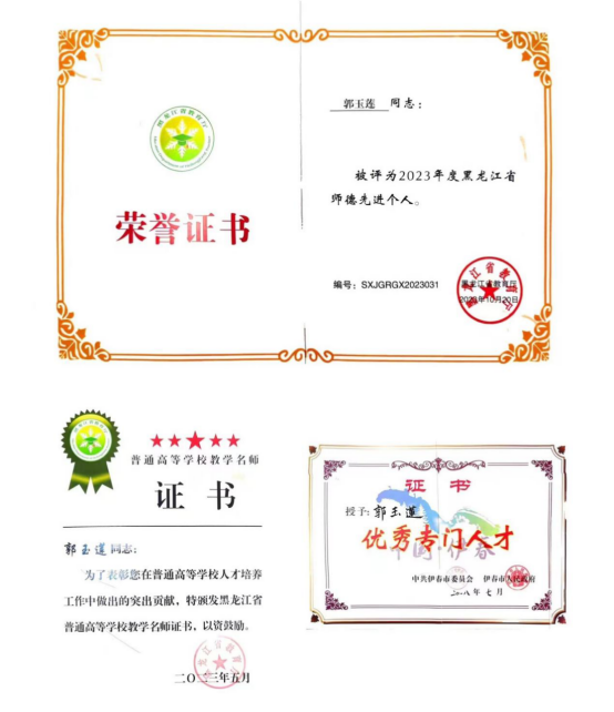 郭玉蓮老師牢記德為師之本的深刻道理,嚴(yán)格依法執(zhí)教,模范遵守家庭道德、職業(yè)道德和社會(huì)公德。她永遠(yuǎn)把工作放在第一位:無(wú)論單位什么時(shí)候需要她,她都在。在自己平凡的工作崗位上詮釋了責(zé)任與擔(dān)當(dāng)。她深入學(xué)習(xí)并模范遵守新時(shí)代教師職業(yè)行為十項(xiàng)準(zhǔn)則等師德規(guī)范,認(rèn)真參加師德集中學(xué)習(xí)教育專(zhuān)題活動(dòng)。在負(fù)責(zé)大創(chuàng)辦工作期間,2021年部門(mén)被推選為省級(jí)師德先進(jìn)集體候選單位,2023年獲評(píng)校先進(jìn)集體稱(chēng)號(hào)。2023年她本人被評(píng)為全省師德先進(jìn)個(gè)人。